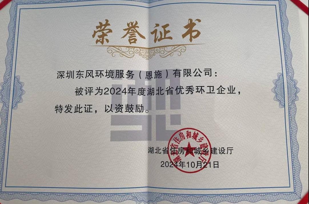 凡人微光终将汇聚成璀璨星河。在活动当天,深圳东风环境服务(恩施)有限公司 获得了2024年度湖北省优秀环卫企业 ,这份沉甸甸的荣誉,是对公司一直以来致力于环卫事业的高度认可。