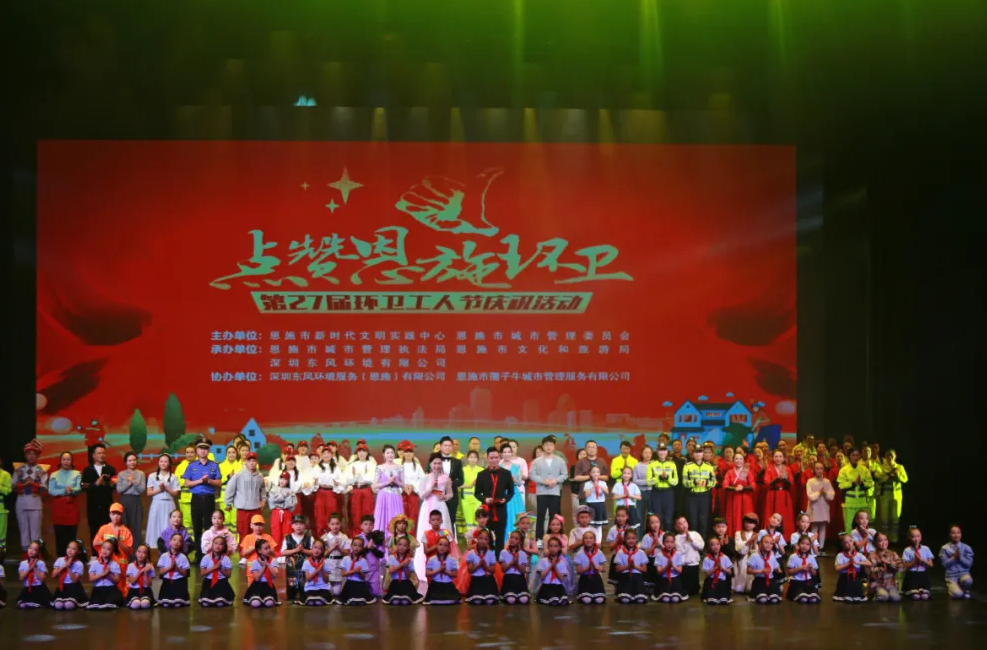 【特别关注】点赞恩施环卫,共创美好家园,深圳东风环境庆祝第27届环卫环卫工人节文艺汇演活动圆满落幕发表时间:2024-10-26 15:44 为热烈庆祝第27届环卫工人节的到来,弘扬环卫精神,充分展示恩施环卫事业发展成果和新时代环卫工人的精神风貌,进一步营造尊重环卫工人、关注环卫事业、珍惜环卫成果的社会氛围,10月25日,由恩施市新时代文明实践中心、恩施市城管委主办,恩施市城管执法局、恩施市文化和旅游局、深圳东风环境有限公司承办的“庆祝第27届环卫工人节文艺汇演活动” 在恩施大剧院举行。